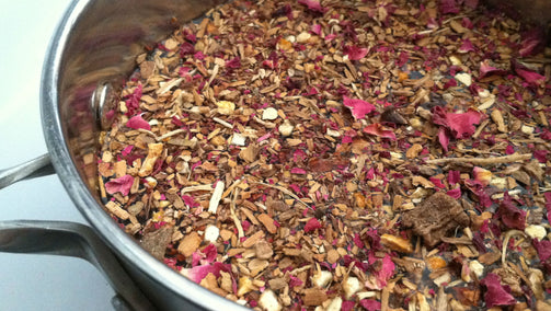Stopping by the Woods on a Snowy Evening: This is when you make a decoction of the Walk in the Woods blend, using "milk" (we use unsweetened almond milk) instead of water. As in A Simple Walk in the Woods above, sweetening with honey brings out that unique sarsaparilla flavor. Another great addition to your "Snowy" Walk in the Woods is your favorite raw cacao powder (or nibs), for a cocoa-like drink.